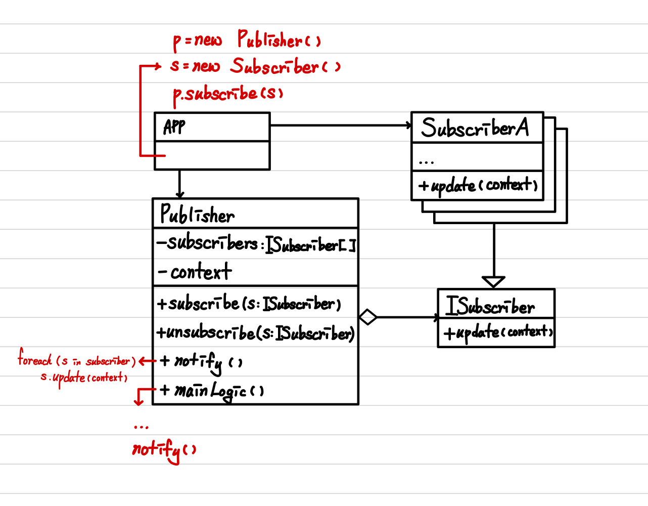 - 새로운 Subscriber, Publisher가 기존 code에 영향을 미치지 않습니다. (Open/Close)