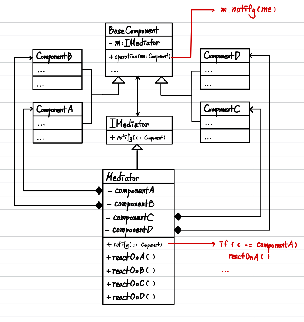 - 개발이 진행될수록 mediator가 전체 시스템을 관리하는 a God Object가 되고, mediator를 사용하는 모든 object가 이에 의존성이 생기게 됩니다.